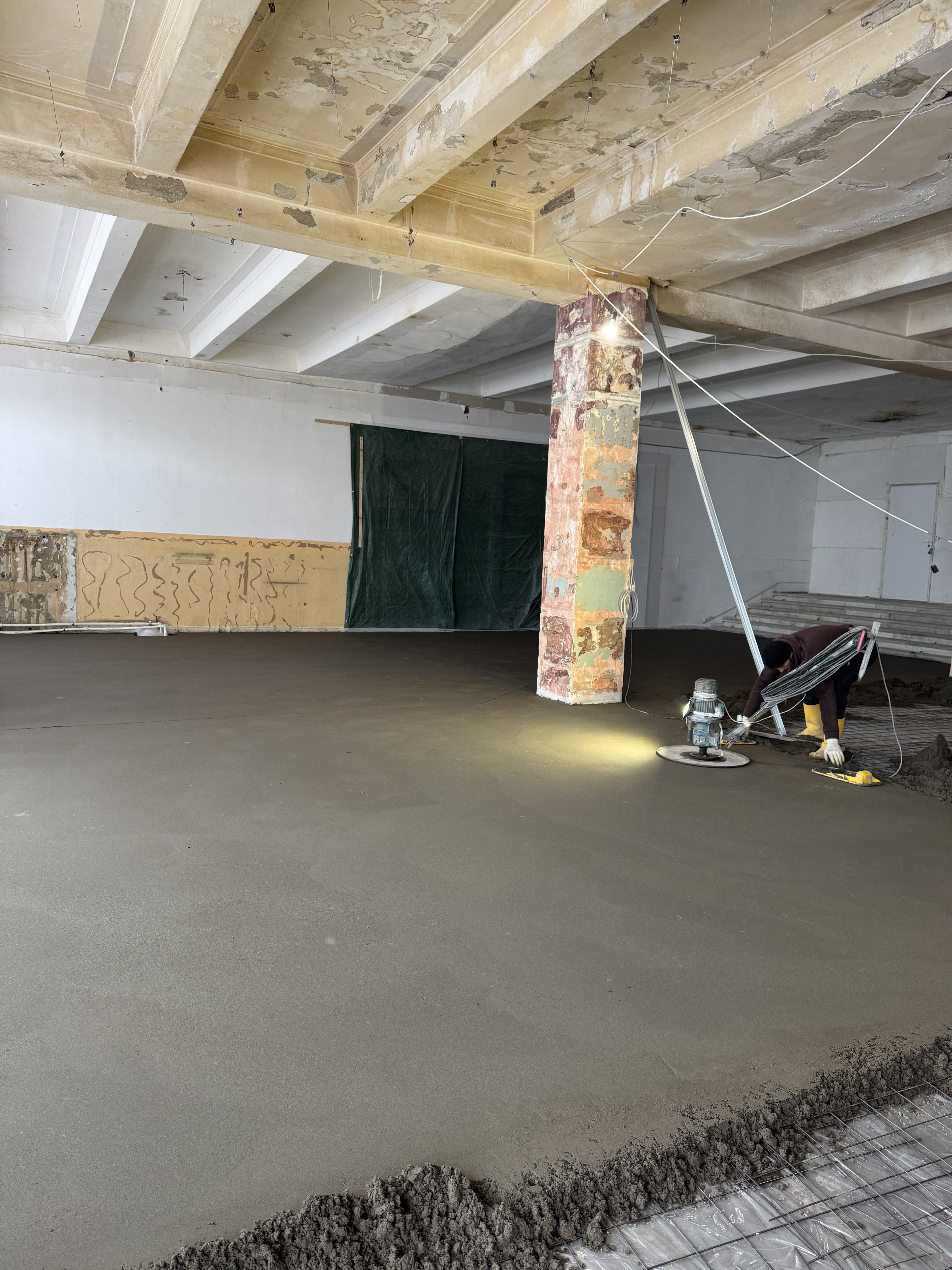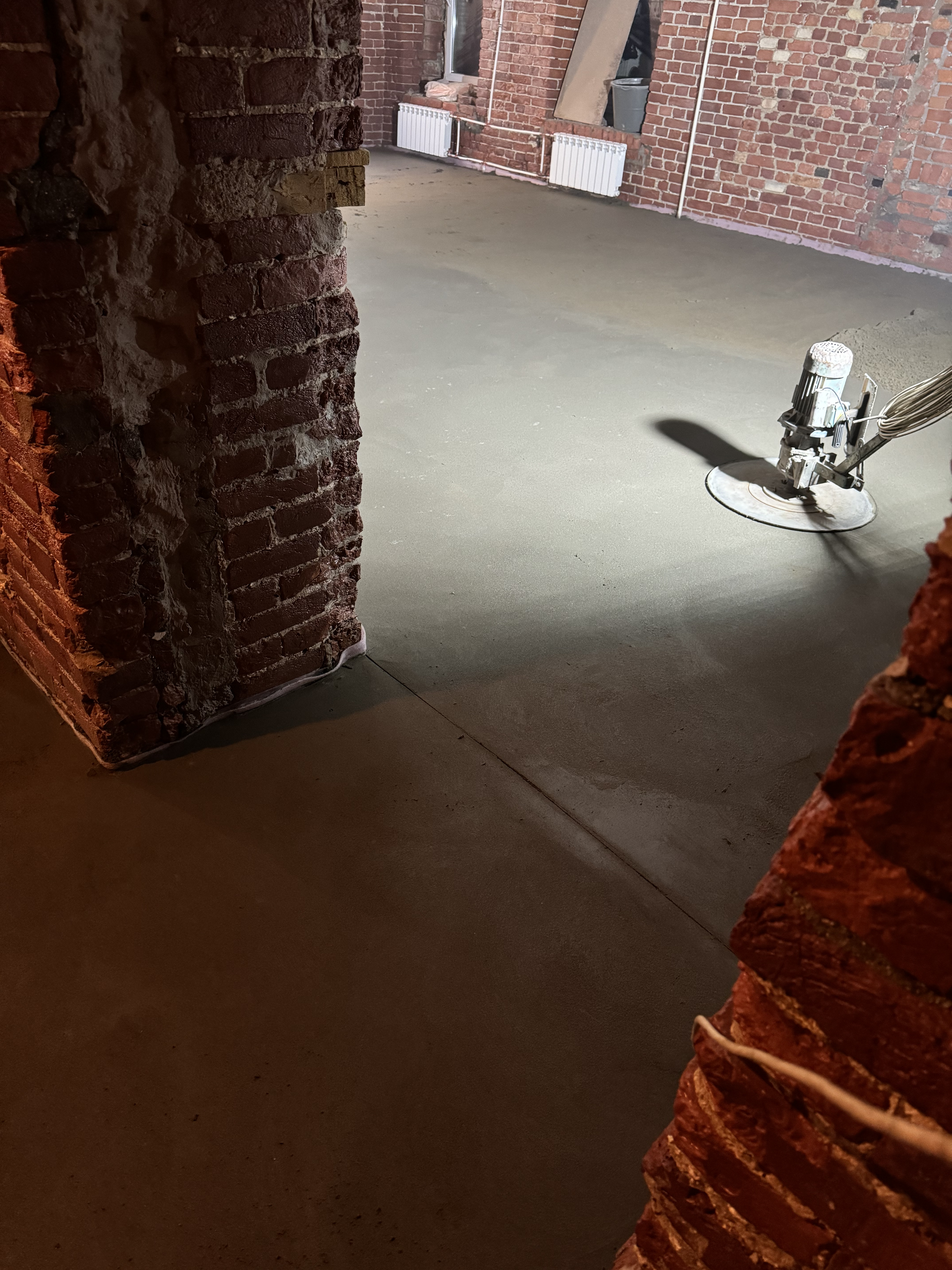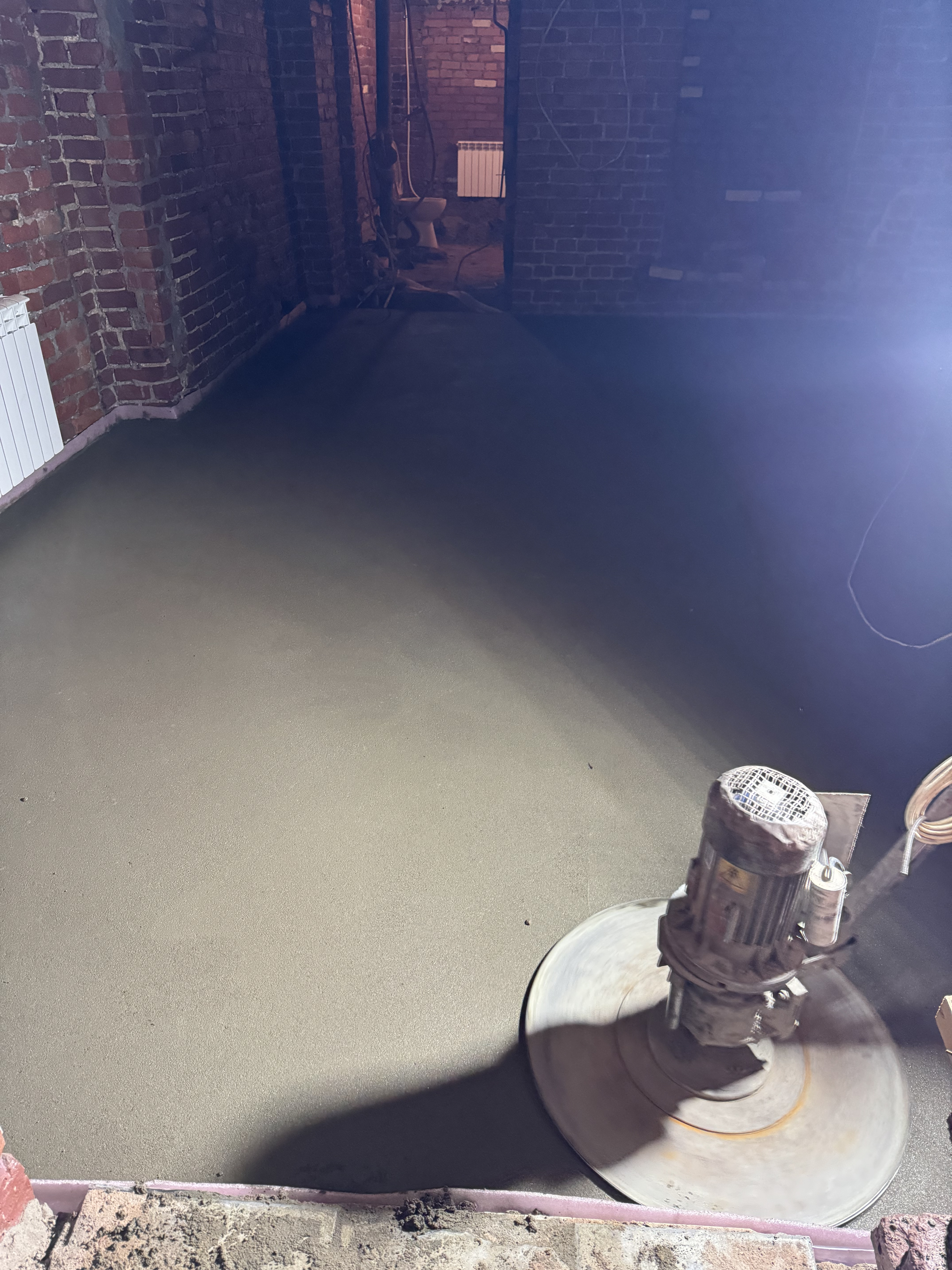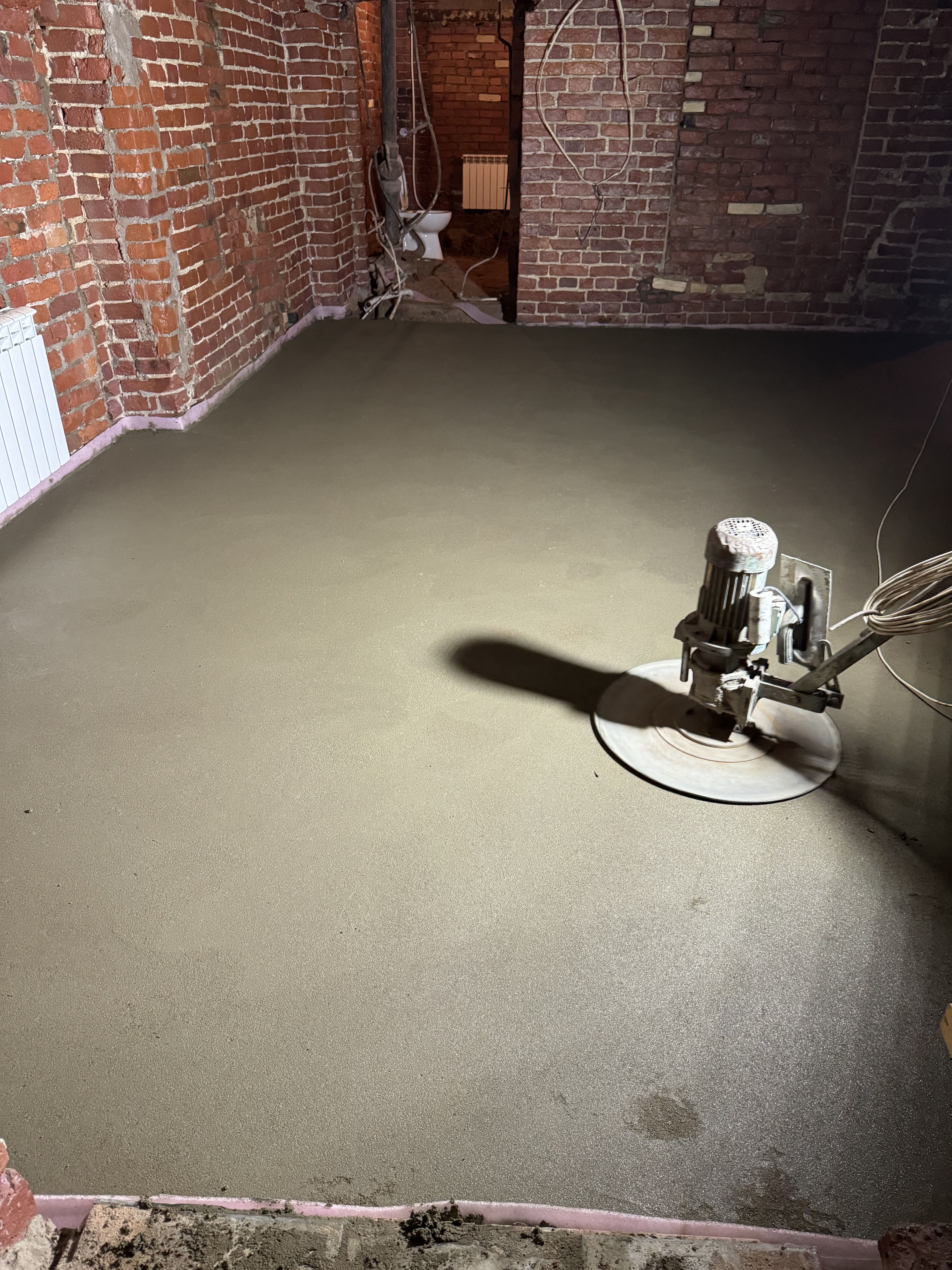 Перед началом работ проводим точный замер и оценку основания, подбираем оптимальную толщину и состав смеси. Затем опытная бригада приступает к выполнению стяжки с использованием профессионального оборудования — ровно, быстро и с гарантией качества